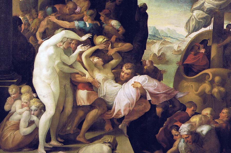 2. Die Göttinnen Hera, Athene und Aphrodite waren zusammen mit den übrigen olympischen Göttern zur Hochzeit des sterblichen Helden Peleus mit der Göttin Thetis (den Eltern von Achilleus) eingeladen. Eris, die Göttin der Zwietracht, war als einzige Göttin nicht eingeladen. Sie warf daraufhin einen goldenen Apfel mit der Inschrift „für die Schönste“ in die Runde und löste damit einen Streit zwischen Hera, Athene und Aphrodite aus, weil jede der Göttinnen den Apfel für sich beanspruchte. Die drei baten Zeus, zu entscheiden, welche von ihnen die Schönste sei. Dieser wollte es jedoch klugerweise vermeiden, sich diese Wahl aufzubürden, da Aphrodite und Athene seine Töchter und Hera seine Ehefrau und Schwester waren. Also ließ er Hermes kommen und trug ihm auf, die Göttinnen zu Paris, dem schönen, wenngleich verstoßenen Königssohn Trojas zu bringen, damit dieser entscheide.