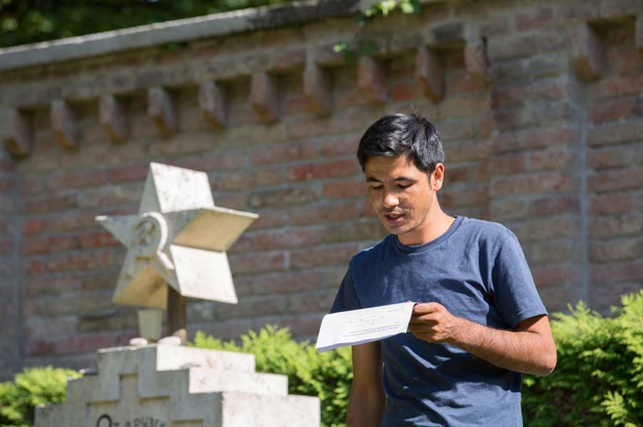Mit Beginn der Proben zu diesem außerordentlichen Projekt hatten wir bereits einen kurzen Artikel veröffentlicht. Jetzt, nach ausverkauften Premieren- und Festaufführungen neigt sich das Theaterprojekt langsam seinem Ende zu. Noch wenige Tage sind die Laienschauspieler an verschiedenen Stationen auf dem Friedhofsgelände zu erleben und ihre ganz persönlichen Begegnungen mit dem Thema Tod mitzuerleben. Schon seit vielen Jahren beschäftigt sich Regisseurin Susanne Reng auch mit dem Thema Tod und dem Umgang mit dem Tod in anderen Kulturkreisen. Dieses Thema auch noch mit einer interkulturellen Laienschauspieler Gruppe zu erarbeiten, wobei jeder Einzelne zunächst auch bereit sein muss, seine eigene Geschichte vor anderen Menschen zu erzählen, ist dabei besonders hoch einzuschätzen.