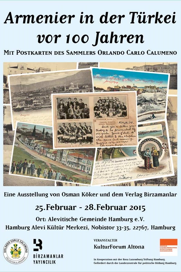 "Sireli Jeghpajrs - Lieber Bruder" - Armenier in der Türkei vor 100 Jahren - Ausstellung mit Postkarten des Sammlers Orlando Carlo Calumeno. Der Verleger und Kurator Osman Köker, der seine Landsleute vor allem darauf aufmerksam machen will, dass die Armenier und auch andere Völker, einen wesentlichen Beitrag zur Gründung und Entwicklung der Städte beigetragen haben, schlägt mit der Ausstellung eine Brücke zwischen der multi-religiösen und vielsprachigen Gesellschaft von vor hundert Jahren und der Gegenwart. Er hat einen wunderbaren Katalog zu der Ausstellung herausgebracht.