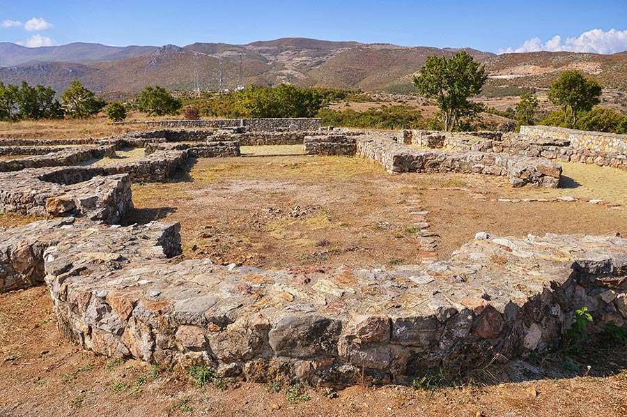 Im Dorf fragten wir eine Bäuerin, die von einem der Felder zurück ins Dorf kam, nach dem Weg. So fuhren wir durch wirklich enge Dorfstraßen, zu guter letzt über bessere Feldwege, allerdings noch immer im Dorf, den Siedlungshügel hinauf. Von rechts kamen plötzlich drei Fahrzeuge mit belgischen und albanischen Kennzeichen, die alle den gleichen Weg zu haben schienen. Vor einem massiven Eisentor war die Fahrt zu Ende, so standen wir aufgereiht vor dem Tor. Natürlich waren wir schnell im Gespräch: zwei belgische Familien, die auf Urlaub bei ihren Verwandten, bzw. ihren Freunden in Albanien zu Besuch waren, darunter ein Hotelier aus Pogradec, ein Reiseführer aus Elbasan und wir. Welch ein glückliches Zusammentreffen, denn der Reiseführer hatte schon den Schlüssel für das Eisentor organisiert. So ging es gemeinsam mit einem ortsansässigen Verwalter des Kulturguts in das ehemalige Siedlungsgelände hinein.