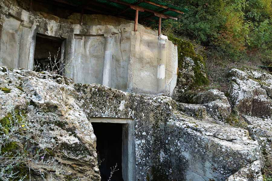 Das so genannte Grab I besitzt eine rechteckige Grabkammer und davor eine Art Vorraum, es stammt aus dem 4. – 3. Jahrhundert v. Chr. Das Grab selbst misst 8,15 Meter mal 4 Meter und hat eine Höhe von 2,40 Metern. Über die Grabkammer wölbt sich ein Tonnengewölbe, dessen Höhe 2,10 Meter beträgt. Die Anlage ist in den Fels hinein gehauen und besitzt zwei Türöffnungen. Außen über der Tür befindet sich eine Regenrinne und Zapfenlöcher. Vier Pilaster mit Kapitellen, die den ionischen Säulenabschlüssen stark ähneln, schmücken die Fassade, an denen noch Spuren von ehemaliger Farbgebung feststellbar sind. Die Grabkammer, mit den Maßen 3 Meter mal 2,80 Meter, ist mit zwei einen Meter breiten Steinliegen ausgestattet, auf der die Toten ruhten. Dieses Grab orientiert sich an den makedonischen Monumentalgräbern aus der 2. Hälfte des 4. Jahrhundert vor Christus.