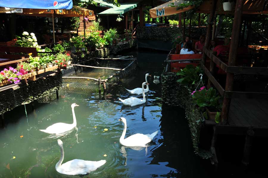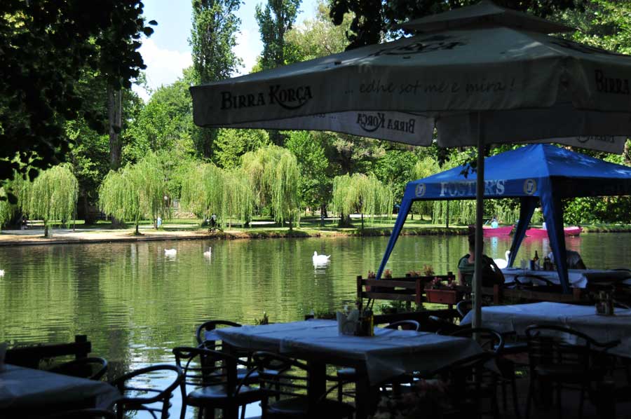 Direkt im Park und in der Nähe gibt es mehrere lokale Restaurants, die frischen Fisch, traditionelle albanische Küche und hausgemachte Spezialitäten servieren. Besonders schön: ein Kaffee am Wasser, begleitet vom Blick auf die Schwäne und das sanfte Plätschern des Flusses.