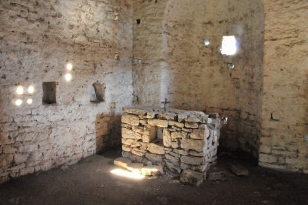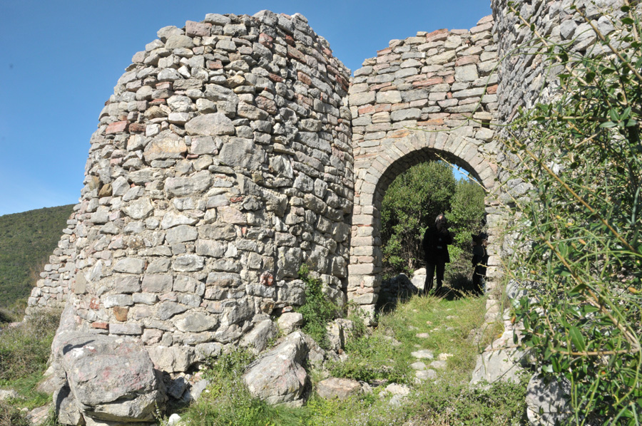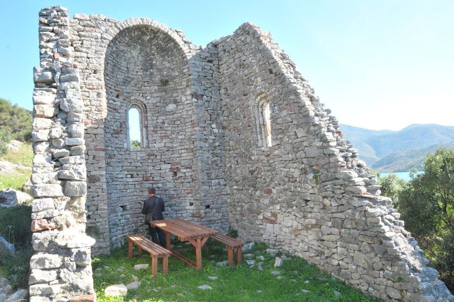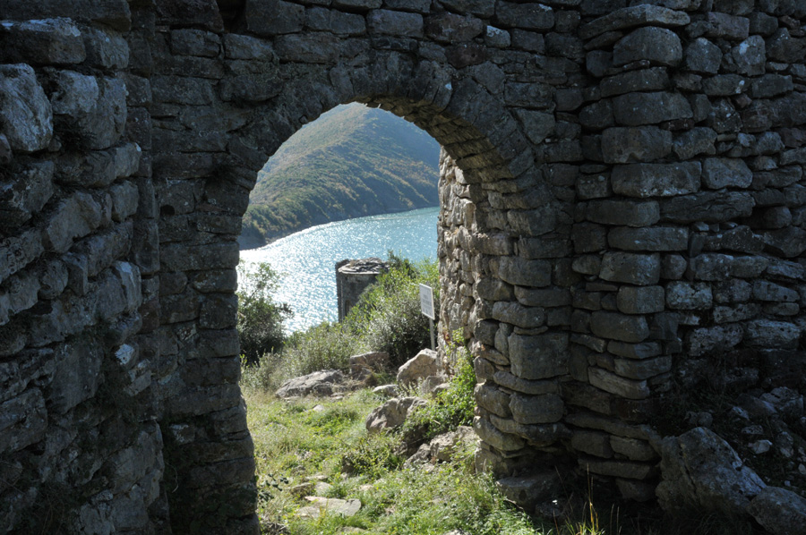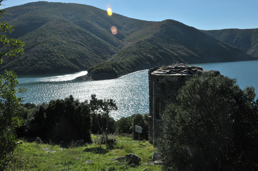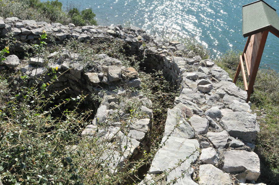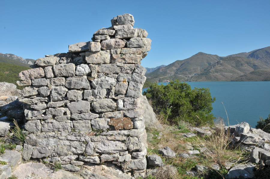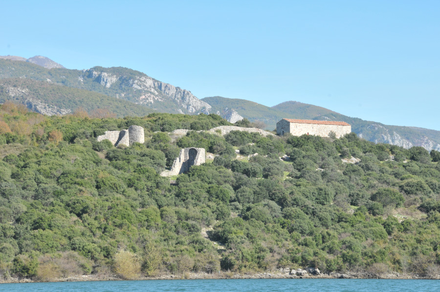 Nach der Anfahrt am Stausee suchen wir einen Fischer auf, der uns mit seinem Motorboot zur Insel bringt. Wir können die Ruinen der mittelalterlichen Burg aus dem 11. Jahrhundert, zwei Ringe aus Mauern und Türmen (einige sind mit dem Anstieg des Wassers im See versunken), die Überreste einer byzantinischen Kirche und andere mittelalterliche Mauern besichtigen. Beeindruckend ist die Lage und die Umsicht auf den steilen Felsen, die sich vom See abheben.