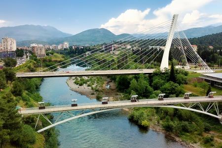 Heute sind die Wahrzeichen der Stadt die orthodoxe Kirche Hristovog Vaskrsenja (Auferstehungskirche) und die Millennium-Brücke über den Fluss Morača, die am 13. Juli 2005 eröffnet wurde.