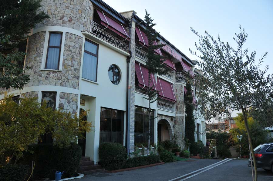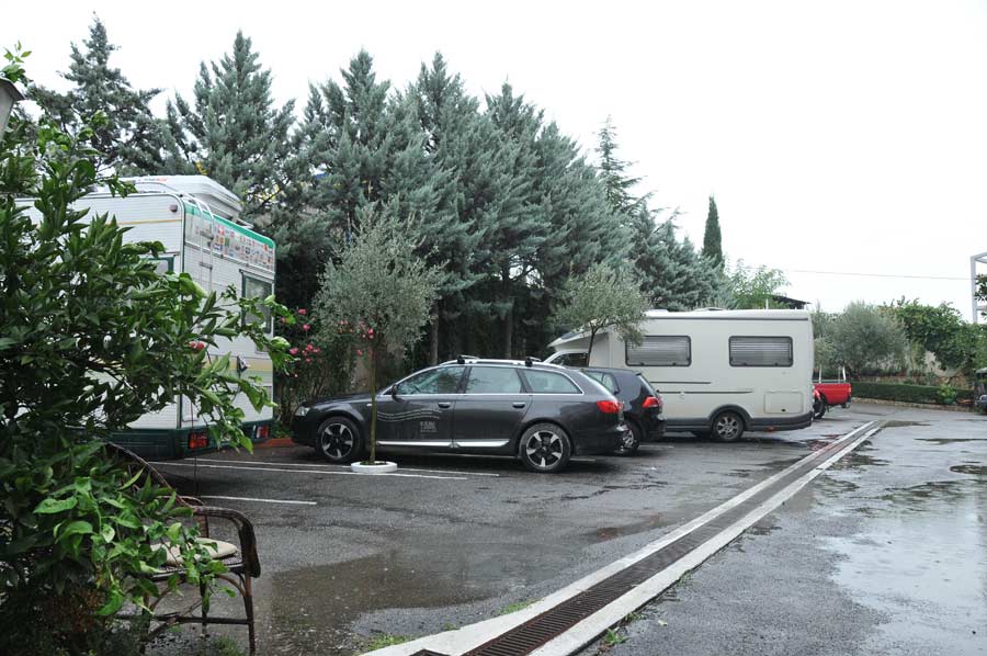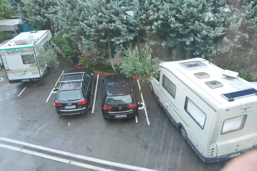 Nach nur wenigen Kilometern von Elbasan aus kommend, erreicht man dann den großen Kreisverkehr des hier bereits fertig gestellten Rings um Tirana herum. Wer zum Hotel Baron möchte, nimmt hier die zweite Ausfahrt, die zur Zeit noch unbefestigt auf Rruga e Elbasanit führt (nicht die Ausfahrt zum Einkaufszentrum). Nach etwa 300 Metern ist man bereits wieder auf der asphaltierten Straße und erreicht wenige Kilometer weiter den Camperstopp Hotel Baron links der Straße. Leider war auch in Tirana das Wetter nicht wirklich einladend, so das wir in den Folge lediglich Konzepte und Angebote besprechen konnten, weniger selbst bereits Zielorte der örtlichen Möglichkeiten besuchen konnten (mit Ausnahme der Stadt Kruja, Bericht folgt). Allerdings trafen wir auf zwei Campergäste, die von hier aus Tirana und Umgebung erkunden wollten.