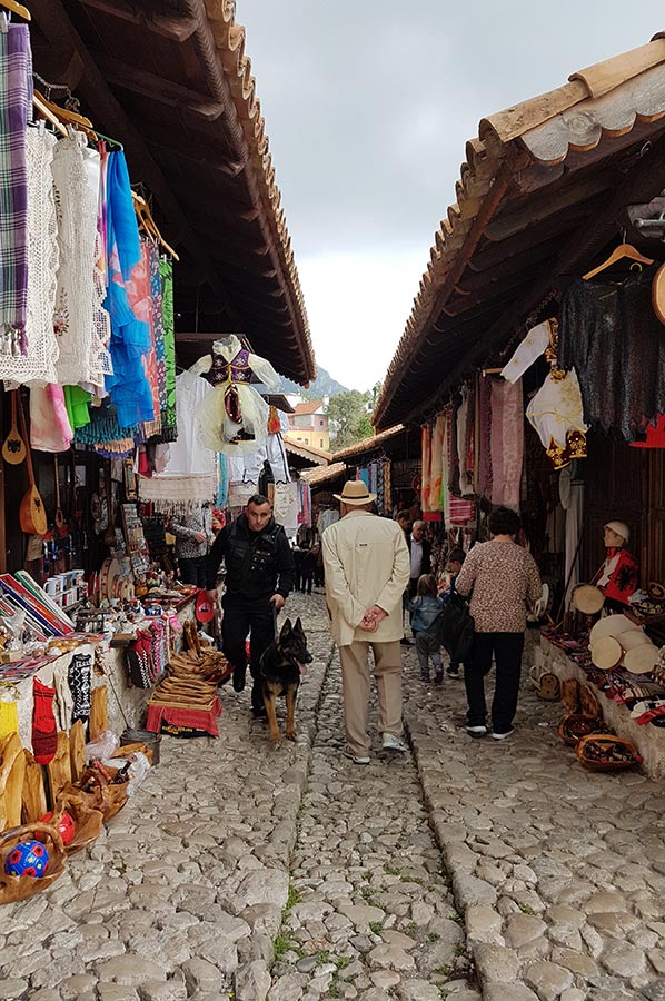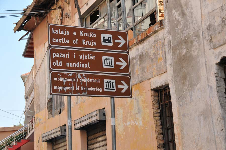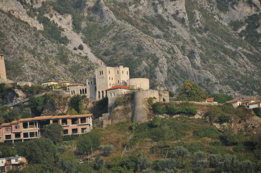 Kruja - Nach unserem Besuch in Durres waren wir an Tirana vorbei zum Bergstädtchen Kruja gefahren, wo heute ein monumentales Museum an den albanischen Freiheitskämpfer Skanderbeg erinnert und zunehmend für touristisches Interesse auch aus dem Ausland sorgt.