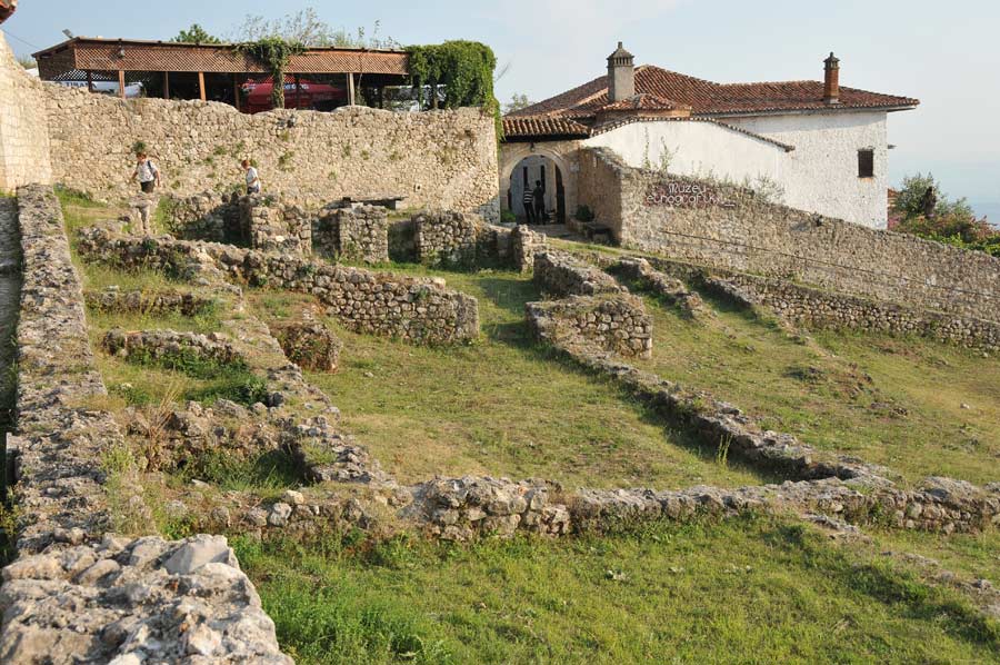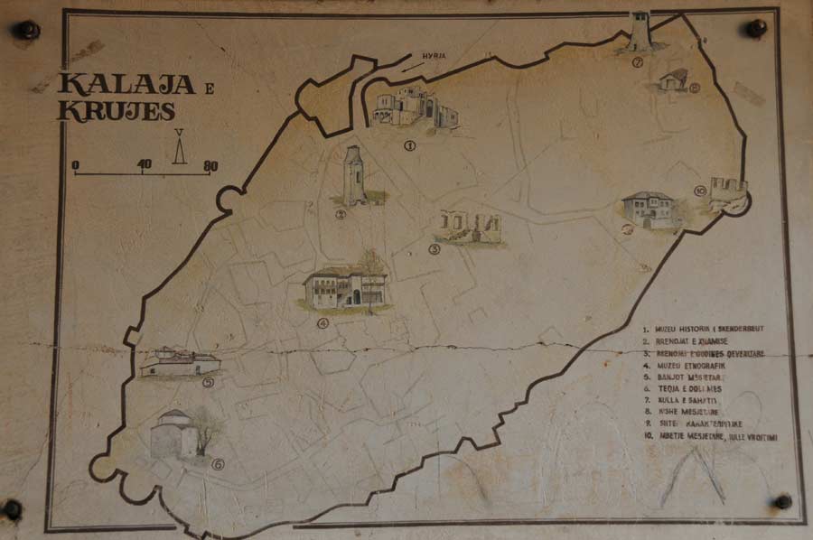 Das Skanderbeg-Museum innerhalb der Festungsmauer, in dem an den Kampf der Albaner unter Skanderbeg und seiner Liga von Lezha erinnert wird, wurde von der Architektin Pranvera Hoxha, der Tochter von Enver Hoxha, konzipiert und soll den Anschein einer mittelalterlichen Trutzburg erwecken. Innerhalb der Festungsmauern befindet sich weiterhin die kleine Dollmatekke der Bektaschi, ein Ethnographisches Museum und ein Türkisches Bad. Im unteren Teil der Festung befinden sich zahlreiche kleine Wohnhäuser, in denen noch immer Familien leben. Am Fuße des Burghügels liegt eine restaurierte Basarstraße, deren Gebäude aus dem 19. Jahrhundert stammen und die typische Architektur der Berggegend widerspiegeln.