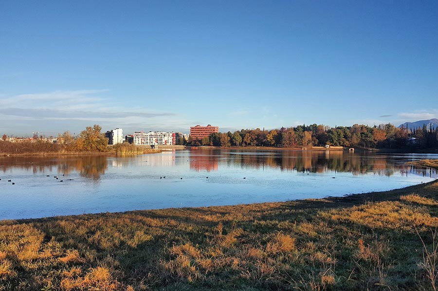 Grünflächen und Seen im Stadtbild Tiranas