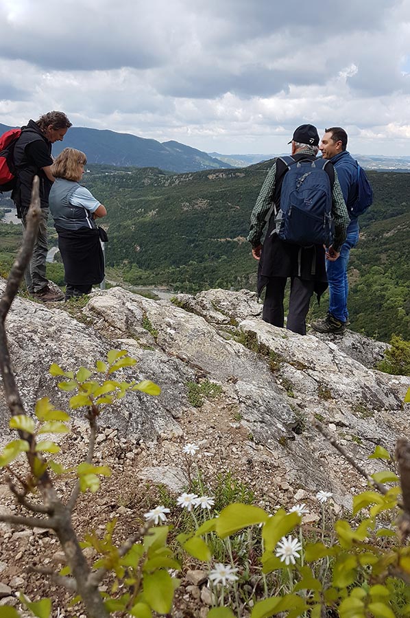 In einer guten Stunde hatten wir die Plattform am Höhleneingang erreicht, unterwegs gibt es mehrere Aussichtsbänke und Picknickplätze, von denen man den Blick auf den Erzen, der im oberen Abschnitt Skoranes heißt, genießen kann.