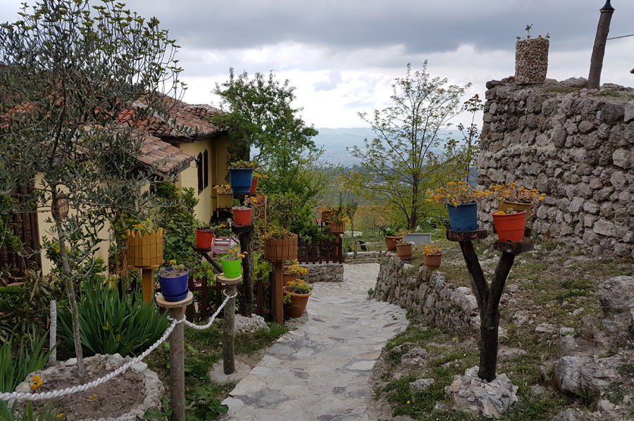 Kruja - Nach dem Besuch des Skanderbeg Museums innerhalb der Festungsanlage sollte sich auch ein Rundgang durch das Burggelände und die örtliche Bebauung anschließen, trotz des drohend dunklen Himmels, der sehr stark auf Regen verwies aber glücklicherweise ausblieb.