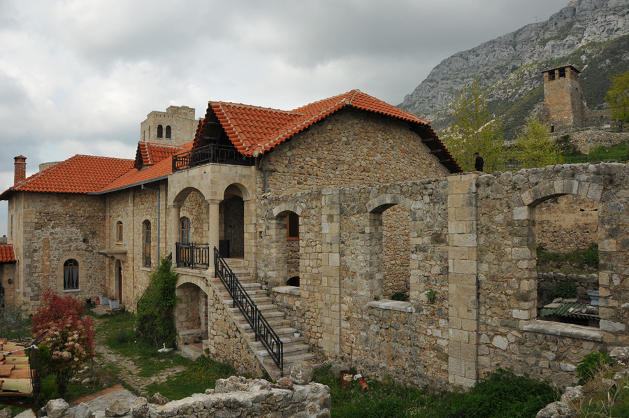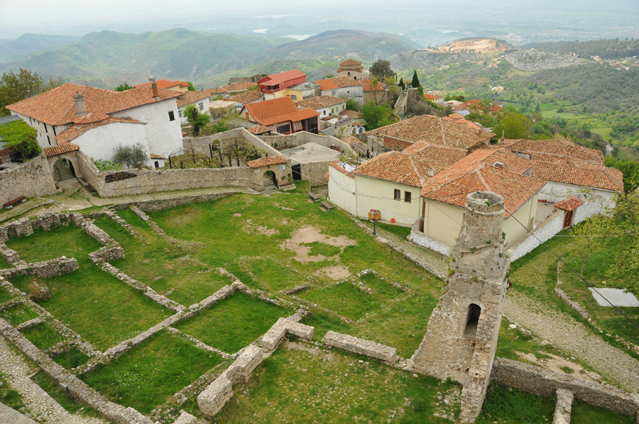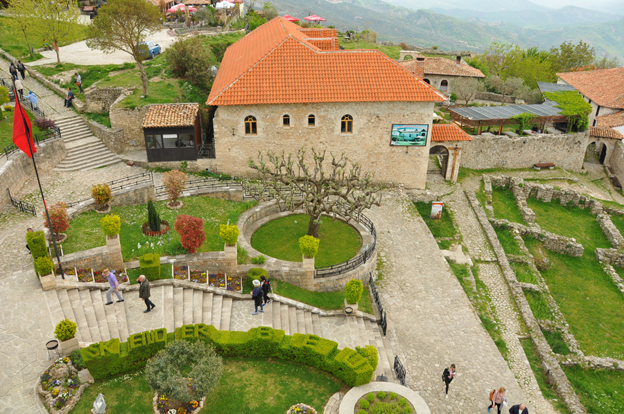 Das Skanderbeg-Museum innerhalb der Festungsmauer, in dem an den Kampf der Albaner unter Skanderbeg und seiner Liga von Lezha erinnert wird, wurde von der Architektin Pranvera Hoxha, der Tochter von Enver Hoxha, konzipiert und soll den Anschein einer mittelalterlichen Trutzburg erwecken. Innerhalb der Festungsmauern befindet sich weiterhin die kleine Dollmatekke der Bektaschi, ein Ethnographisches Museum und ein Türkisches Bad. Im unteren Teil der Festung befinden sich zahlreiche kleine Wohnhäuser, in denen noch immer Familien leben. Am Fuße des Burghügels liegt eine restaurierte Basarstraße, deren Gebäude aus dem 19. Jahrhundert stammen und die typische Architektur der Berggegend widerspiegeln.