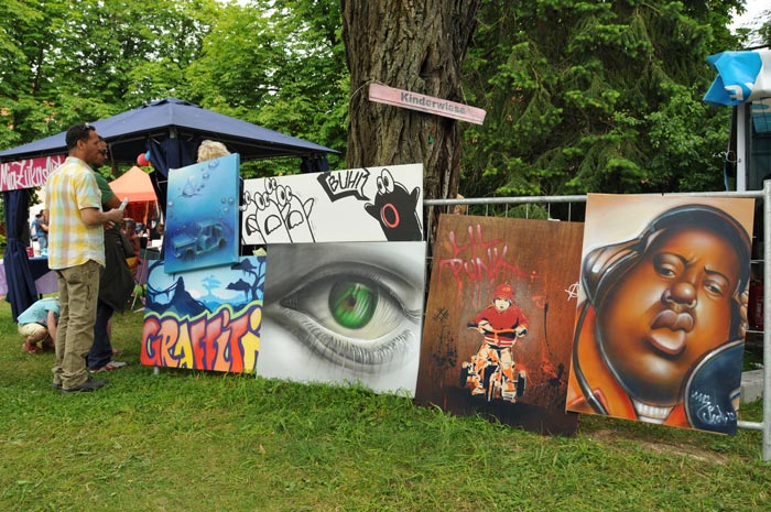 Nach dem Ende dieses Auftritts führte unser Weg zunächst zur „Kunst grenzenlos“ im Apparatehaus wo Studierende der Kunstuni Linz zur Gast beim Kulturpark sind, dann weiter zur Grafitti Battle, wo recht professionelle Grafitti-Sprüher Ihre Kunst auf Wandflächen präsentierten.