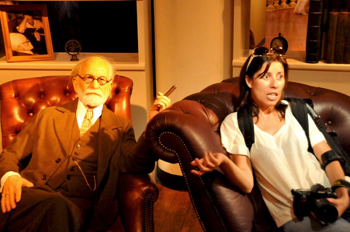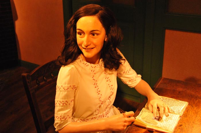 Ausgestellt werden heute lebensnah nachempfundene Wachsfiguren von historischen Gestalten und Personen der aktuellen Zeitgeschichte, solche von Sportlern, Schauspielern, Musikern, Politikern und Models, hier die Figur der Anne Frank beim Schreiben ihres Tagesbuchs.