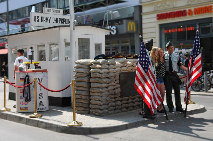 Der Checkpoint Charlie war einer der bekanntesten Berliner Grenzübergänge durch die Berliner Mauer zwischen 1961 und 1990. Er verband, in der Friedrichstraße zwischen Zimmerstraße und Kochstraße (beim gleichnamigen U-Bahnhof), den sowjetischen mit dem US-amerikanischen Sektor und damit den Ost-Berliner Bezirk Mitte mit dem West-Berliner Bezirk Kreuzberg. Der Kontrollpunkt wurde im August 1961 infolge des Mauerbaus eingerichtet, um die Grenzübertritte des westalliierten Militärpersonals, der Sowjetischen Militärverbindungsmission (SMM) und ausländischer Diplomaten erfassen zu können. Heute ist Checkpoint Charlie ein touristisches Highlight jeden Berlin Besuchs.