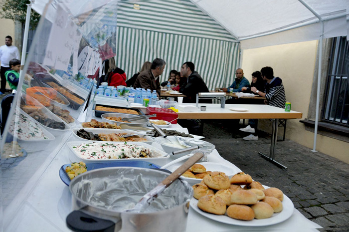 Im Innenhof des EBW hatte die DITIB-Gemeinde Regensburg, die das Catering für die drei Tage des Festivals übernommen hatte, ihre selbst produzierten Köstlichkeiten als Marktstand aufgebaut, der immer gut besucht war. Neben gefüllten Weinblättern, den obligatorischen Köfte und Kebabs wurden allerlei Köstlichkeiten der türkischen Küche gereicht.