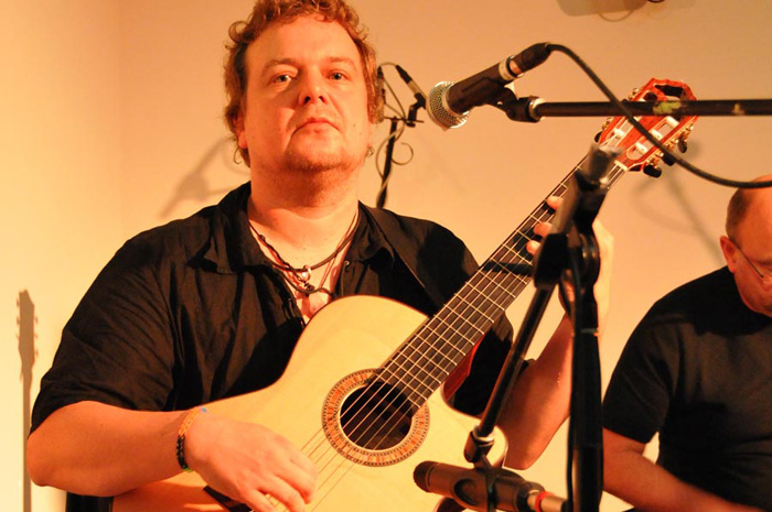 Den Abschluß des Abends bildete eine der Bands aus der breiten Palette der musikalischen Bandbreite des Bassisten Chris Röhrl: Kubus M. Hier im Bild Günter Brandl, der Virtuose an der Gitarre. Kubus M hatte sich für den heutigen Abend ein Unplugged-Programm vorgenommen, das beim Publikum sehr gut ankam.