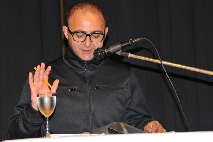Nach einem kleinen Empfang im Foyer des "Leerer Beutel" folgte dann ein weiterer Höhepunkt des Eröffnungsabends: Der als Grenzgänger zwischen den Kulturen bekannte Autor Su Turhan betritt im Rahmen seiner Lesung die Bühne und bietet somit einen Vorgeschmack auf die folgenden Veranstaltungstage. Su Turhan, der für seinen Kinofilm „Ayla“ in New York mit dem Publikumspreis ausgezeichnet wurde, las aus seinem zweiten Krimi „Bierleichen“, der Versuch zwischen der deutschen und der türkischen Kultur zu vermitteln.