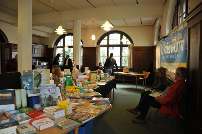 Zwischen den Veranstaltungen standen immer wieder die Büchertische im Mittelpunkt des Interesses. Leseratten nutzten die Auswahl der zur Schau gestellten Bücher ausgiebig, auch um erste Passagen zu lesen.