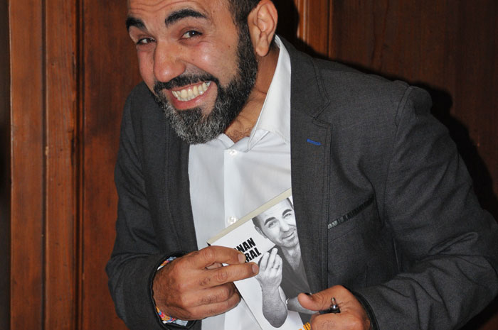 Schon im Eingang erfolgten erste Autogrammwünsche, dann folgte eine Lesung unter Einbeziehung der Zuhörer, dann erneut Autogramme und Selfies ohne auch nur den Anklang von schlechter Laune, kurz Adnan Maral, ein Künstler zum Anfassen. Adnan Maral