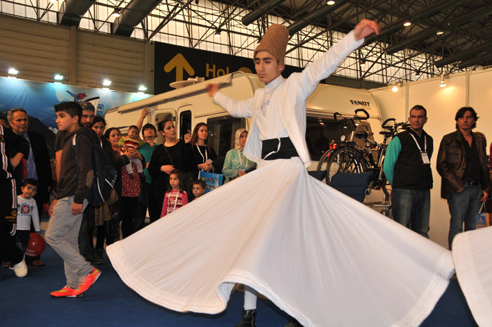 Auch wie bestellt: Eine Gruppe von tanzenden Derwischen direkt am Projektwohnwagen. Das bunte Programm und vielseitige Angebot machen den Erfolg der Messe Travel Turkey Izmir aus, die weltweiten Kontakte der Hannover Messe AG tun ihr Übriges dazu.