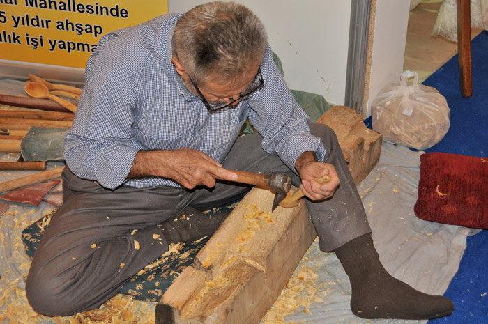 ....... gab es eine bunte Palette von Möglichkeiten, sich auch selbst mit einzubringen. Hier bei der Herstellung eines Holzlöffels.
