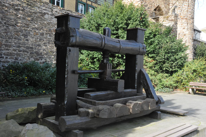 Direkt neben dem Niedertor diese historische Spindelpresse.
