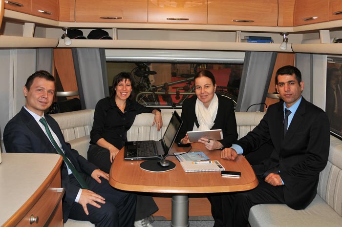 Noch vor der offiziellen Eröffnung der EMITT Tourismusmesse in Istanbul waren erste Besucher bereits am Projektwohnwagen erschienen und ließen sich umfänglich zum Projekt, zur Kulturportal Alaturka.info sowie zu möglichen Kooperationen informieren.