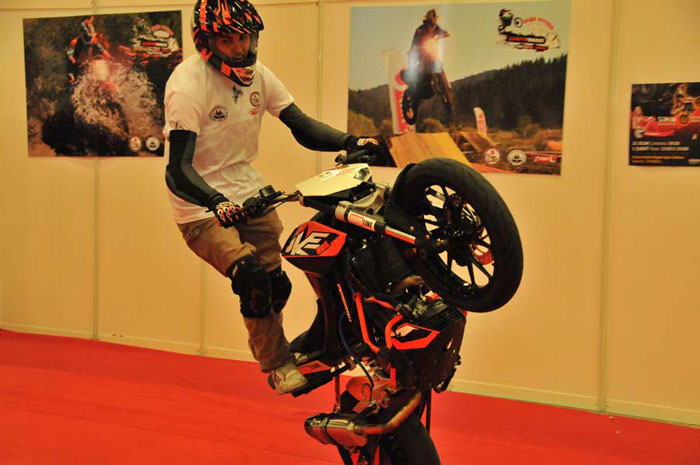 Einem vergleichbaren Motto folgte auch dieser Aktivsportler, der sein Können auf dem Motorrad präsentierte, um damit auf eine internationale Ourdoor-Veranstaltung am Schwarzen Meer hinzuweisen.