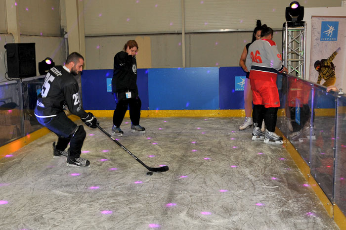 Zum weiten Feld des Tourismus gehörte auch die Präsentation des Wintertourismus, hier in Form eines Show-Eisfeldes, dass von Eishockey Sportlern zu Demonstrationszwecken genutzt wird.