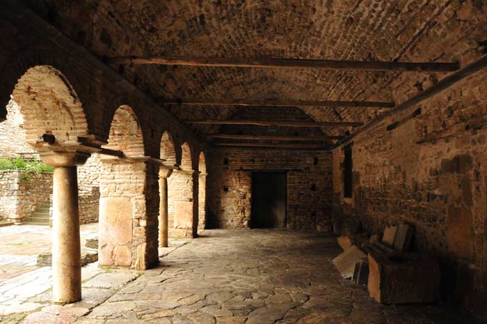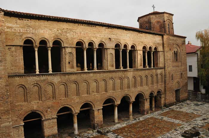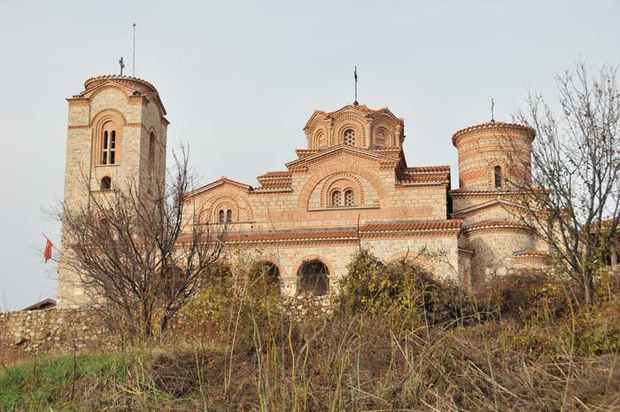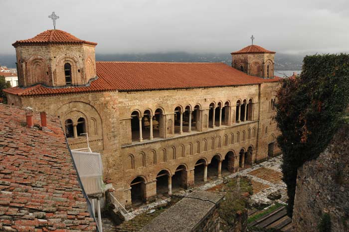 Auf dem Stadthügel, der einst Ausgangspunkt der Besiedlung und Standort der antiken Stadt Lychnidos war, wurde die Klosterkirche "St. Klement und Pantelon" neu errichtet. Der Ziegelsteinbau auf dem Grundriss des „eingeschriebenen Kreuzes“ ist mit einer oktogonalen Kuppel und einer gestuften Altarapsis versehen. Im 14. Jahrhundert wurden zu beiden Seiten des Altarraums zwei Nebenkirchen angefügt. Direkt daneben befinden sich die Ausgrabungen der römischen Stadt Lychnidos. Leider auch einige Betonneubauten, die Teile der Ausgrabungen überdecken.