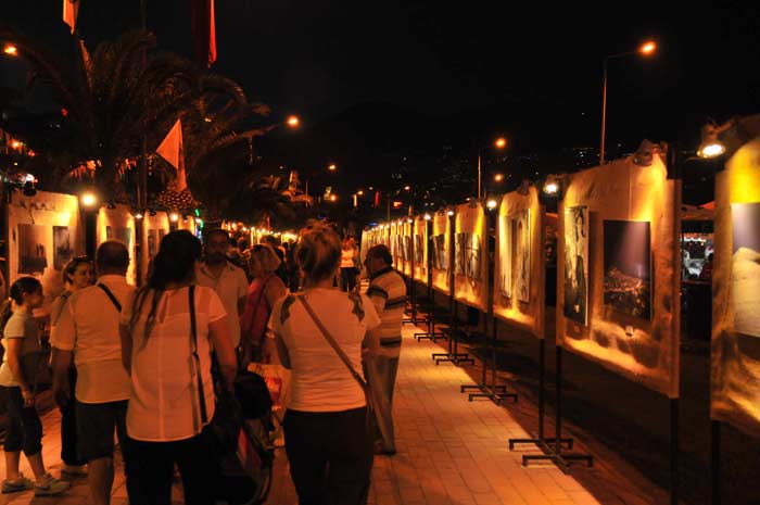 Entlang der Hafenanlage waren Fotografien aus Alanya und der unmittelbaren Umgebung ausgestellt, die das noch unverbaute Hafenstädtchen zeigten. Beeindruckende Zeitzeugen einer längst vergessenen, ruhigen aber auch ärmlichen Epoche um die Jahrhundertwende des letzten Jahrhunderts. Gegenüber eine Gasse mit moderner Fotografie verschiedenster Künstler aus der gesamten Türkei.