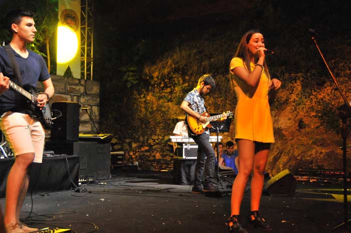 Neben den Diskotheken war eine weitere Bühne aufgebaut, auf der sich Nachwuchskünstler präsentieren konnten. Hier eine junge Sängerin mit ihrer Band (wir konnten den Namen nicht erfahren), die u.a. Stücke von den Skorpions präsentierte.