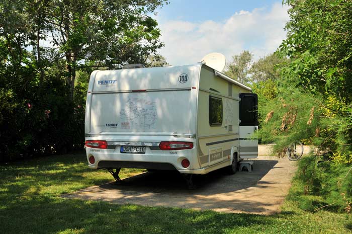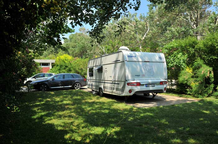 Hochgewachsener Baumbestand und Strauchgruppen, die allerdings immer ausgiebig gewässert werden müssen, sorgen für wohlige Campingatmosphäre, der Strand und das Meer tragen ihren Teil zum Wohlfühlen bei.