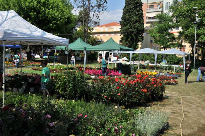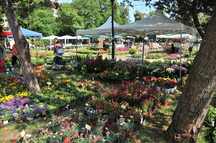 Gartenbaubetriebe und auch Privatleute boten hier am Sonntag ihre Produkte zum Erwerb an, immer auch für ein ausführlich erklärendes Gespräch bereit. Marktatmosphäre bei strahlend blauem Himmel und angenehm frischer Meeresbrise.