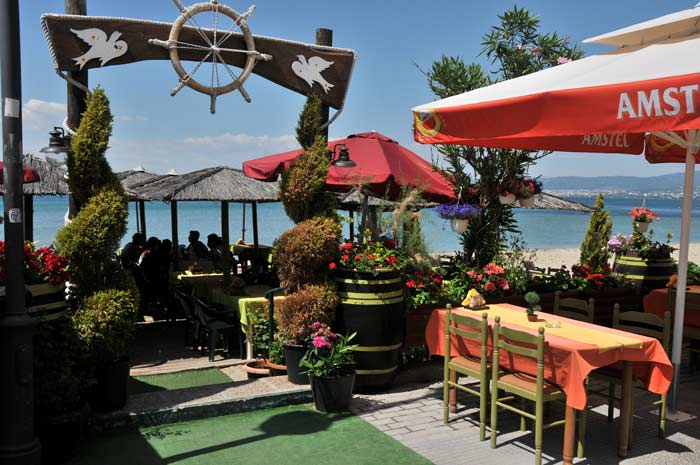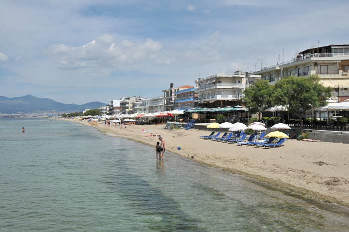 Mit Perea oder Peraia wurden im antiken Griechenland Landschaften bezeichnet, die gegenüber bzw. jenseits eines Flusses oder einer Meeresstraße lagen. So ist denn wohl auch der Name der Stadt Peraia zu erklären, der unser neuer Anreiseort ist: Peraia, Strand und Boulevard gegenüber Thessaloniki.