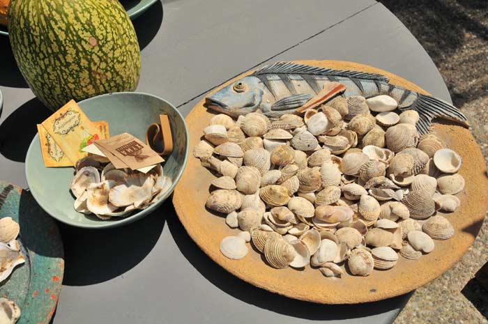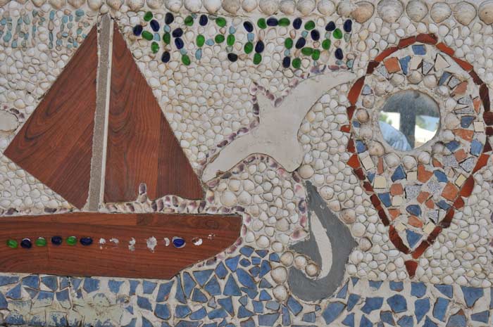Kleinod aus Muscheln, Fliesenstückchen und Steinen: Kunst am Bau!
