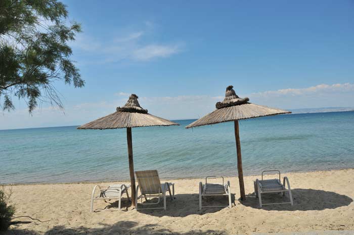 Über das Internet hatten wir die Bekanntschaft mit Toni Zampetas gemacht, der in Peraia einen Camping- und Caravanzubehörhandel betreibt und gleichzeitig auf seinem Gelände einige Stellplätze für Camper anbietet. So war denn der Caravan sicher abgestellt und wir konnten uns in der Umgebung umschauen.