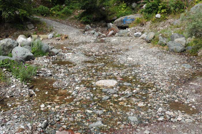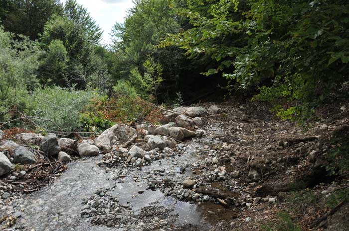Ein Bachlauf, der trotz des Hochsommers noch erfrischen kühles Quellwasser führte, kreuzte unsere Tour hinauf zum Kamen, der unmittelbar die Grenze zu Albanien bildet.