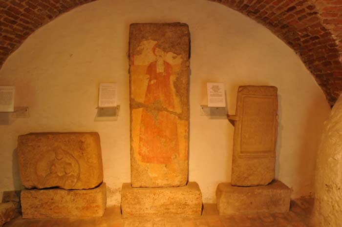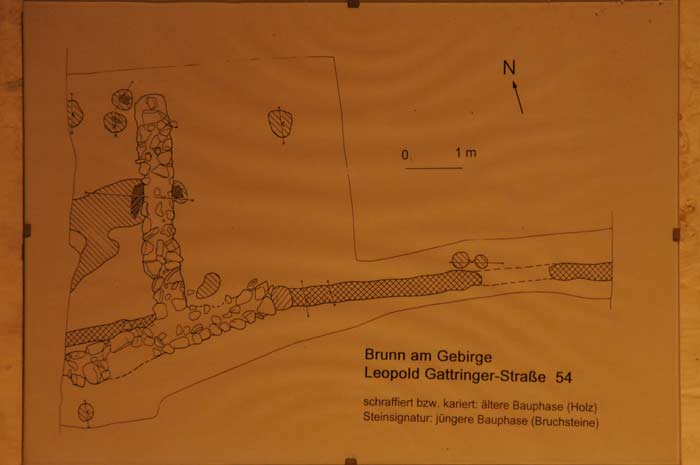 Diese hier im Bild zu sehenden Steinplatten stammen aus dem 2. / 3. Jahrhundert nach Christus. Das Grabporträt einer einheimischen Frau in Polychrommalerei auf Mörtelgrund ist eine Rarität, die zumindest in Österreich einzigartig ist. Die römische Siedlung hat noch im 4. Jahrhundert bestanden. Die in Brunn zutage gekommenen Funde bezeugen eine römische Besiedlung des Ortes seit dem 2. Jahrhundert, die gleichzeitig eine Bestätigung des Verlaufs der römischen Reichsstraße von Vindobona nach Aquae über Brunn am Gebirge bedeutet.