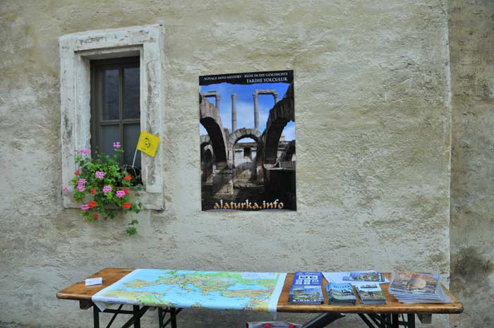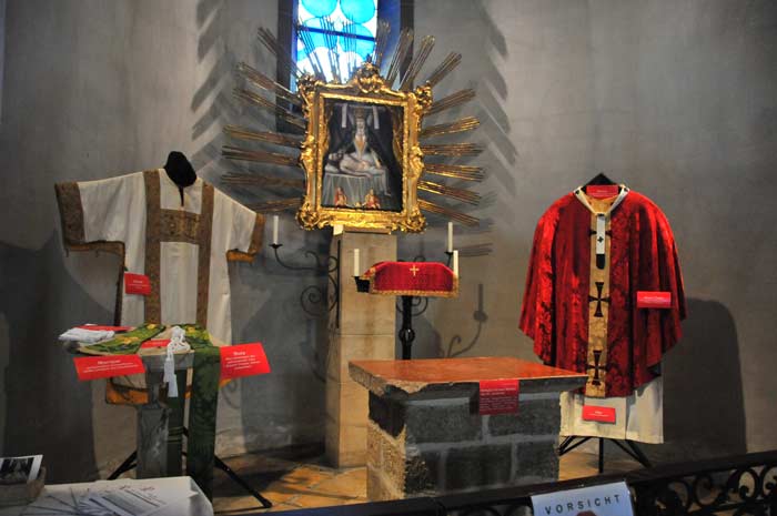 Neben dem Heimathaus sind weitere Nebengebäude in das Römerfest involviert, so auch die Kirche von Brunn, in der es einige Schautafeln zum Thema "Christen im Römischen Reich" sowie traditionell liturgische Gewänder anzuschauen gibt.