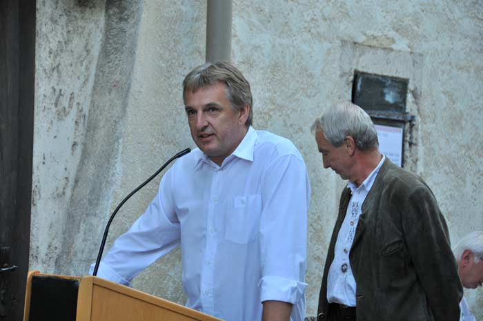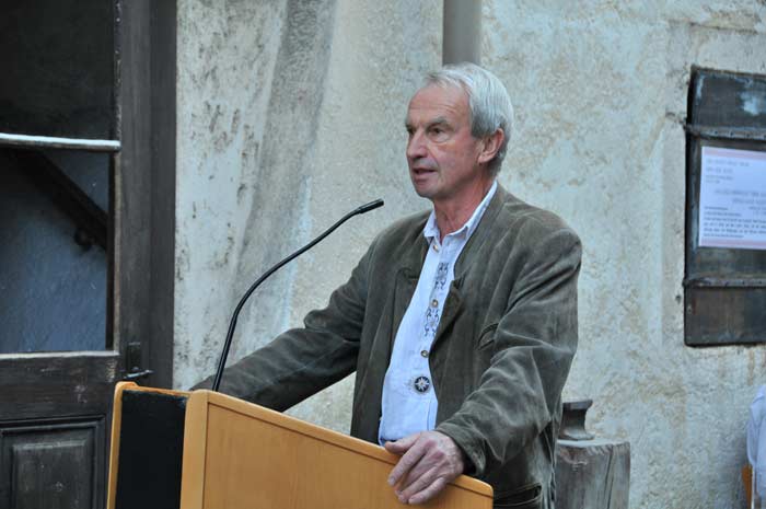 Zum Anlass der Eröffnung der diesjährigen Römertage spricht der Leiter und Obmann des Vereins Brunner Heimathaus Julius Niederreiter einige einführende Worte.