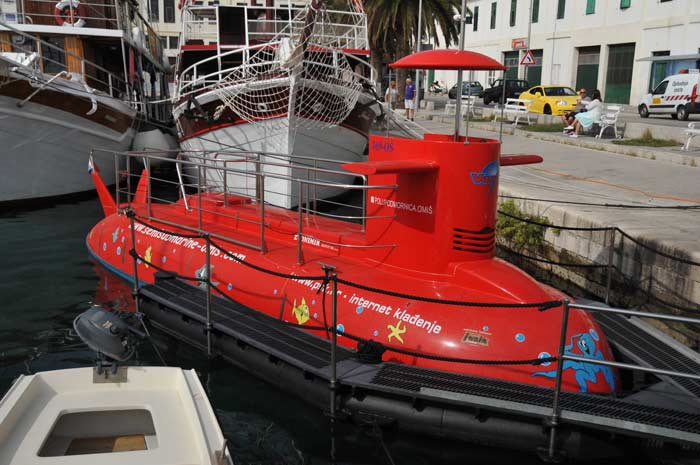 Zu den Attraktionen im Hafen zählt dieses "Unterseeboot", das über einen gläsernen Boden verfügt wodurch Touristen im Sitzen die Unterwasserwelt entlang der Küste betrachten können.