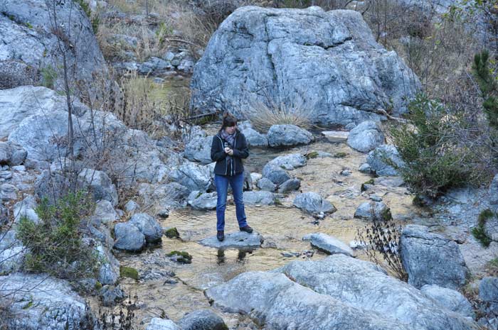 Trotz der Kälte, die sich durch die Hufeisenform des Enipeas Canyons und den damit verbundenen Schatten noch zusätzlich verstärkte, waren wir bemüht, auch noch einige Aufnahmen am Bachlauf zu filmen.