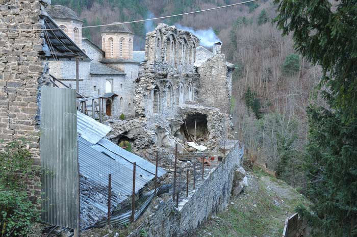 Während der Abfahrt vom Bergrestaurant Prionia stoppten wir kurz am Kloster Agios Dionisios, das momentan mit Unterstützung der EU restauriert wird, um dem weiteren Verfall zu begegnen.