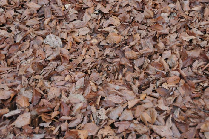 In einer Senke hatte sich das schon braune Herbstlaub in so großer Menge gesammelt, das selbst ein tiefer Graben nicht mehr zu erkennen war.