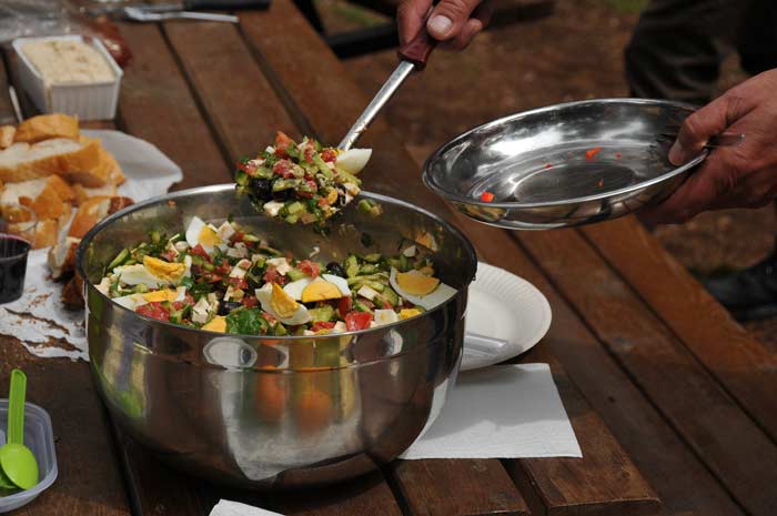 Fleißige Hände bereiteten einen köstlichen Salat aus dem mitgebrachten, frischen Gemüse und den Kräutern, dazu gab es Brot und Früchte zum Nachtisch, selbst an eine Flasche Wein war gedacht worden.