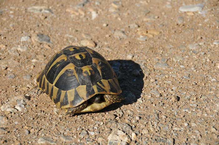 So stießen wir auch auf diese Landschildkröte, die sich zunächst von uns etwas verunsichert fühlte, .........