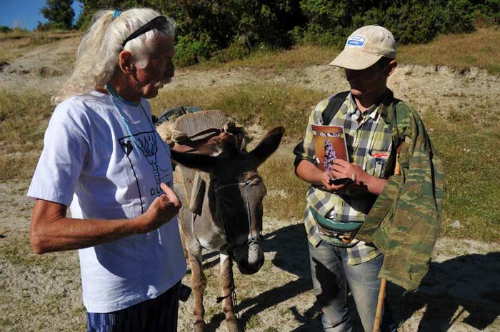 Sehr geduldig zeigte sich auch der Esel, der sich auf Kommando des Schäfers nicht mehr von der Stelle rührte. Während unseres Gesprächs kümmerten sich die der Herde zugehörigen Hirtenhunde um die Herde.