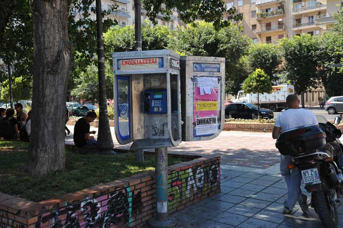 So findet man neben dem eindrucksvollen Stadttor des Galerius aus römischer Zeit eine altbackene aber funktionstüchtige Telefonbox mit weiteren Graffitis mit den teilweise sich wiederholenden Botschaften.