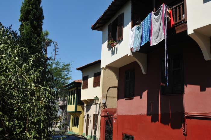 wechseln zu steinernen Mauerwerk mit großen Erkern, ja sogar Holzbauweise als Skelett mit verputztem Flechtwerk ist zu sehen, sehr stark an die osmanischen Häuser des 17. und 18. Jahrhunderts in Safranbolu erinnernd.